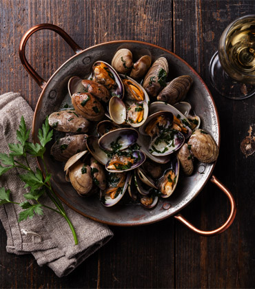 Mussel with tomato sauce, wine